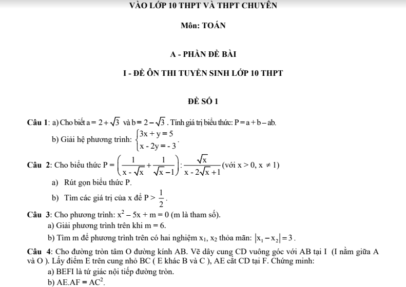 40 đề Thi Toán Vào Lớp 10 Chọn Lọc Có đáp án