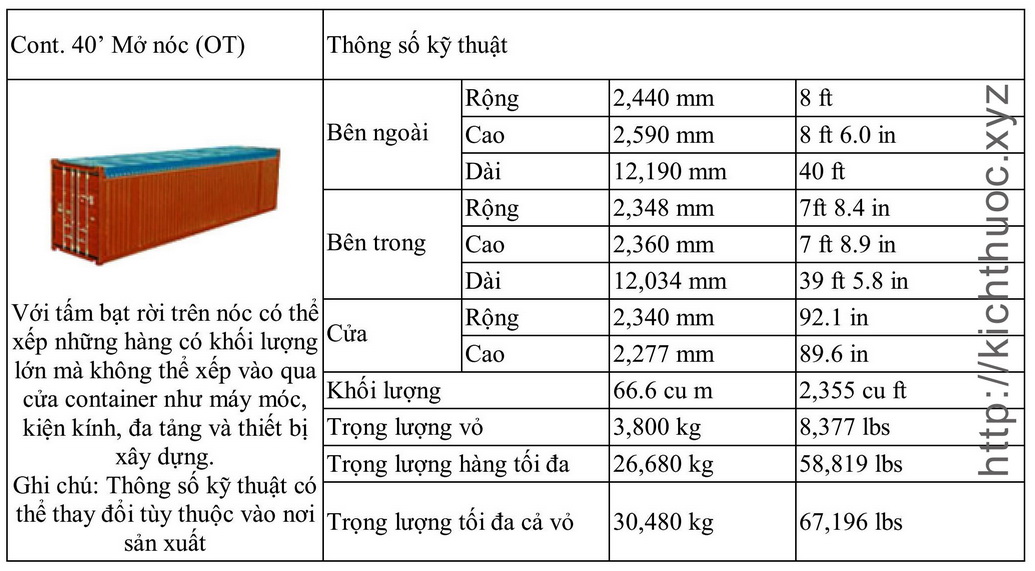 40 Ft Container Khối Lượng M3 65 9 Cbm Tải Trọng 30500kg 40 Ot Kich Thước Container