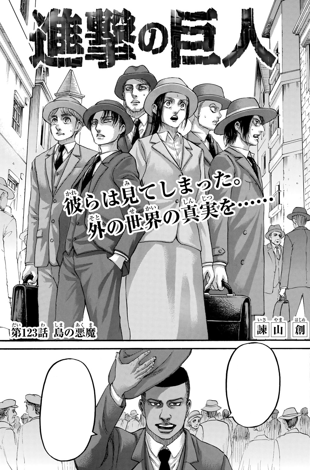 Attack on titan chapter 123 wiki. We are a community dedicated to the manga attack on titan 進撃の巨人 shingeki no kyojin created by hajime isayama as well as its anime adaptation and all other derivative works. The survey corps explores marley for the first time and learn about the political situation in the outside world. This article is about the 122nd chapter of the attack on titan manga. Attack on titan japanese.