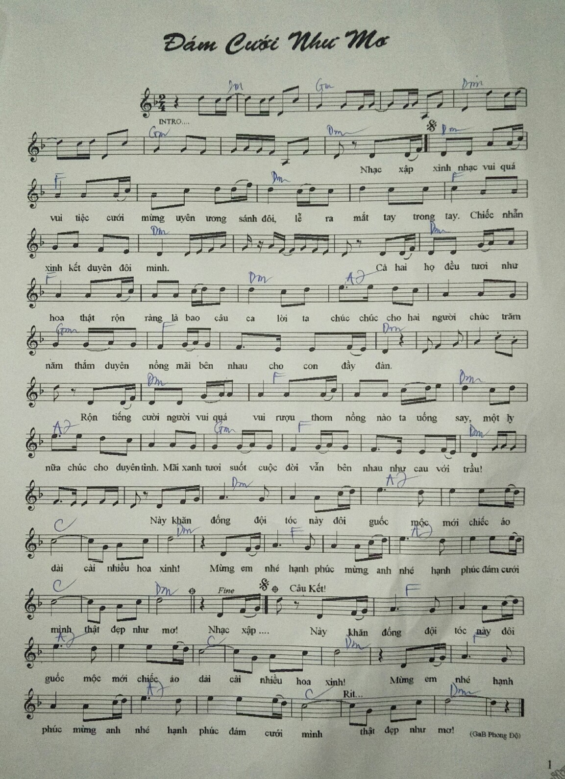 Sheet Bai Hat đam Cưới Như Mơ Quang Linh Sien Organ