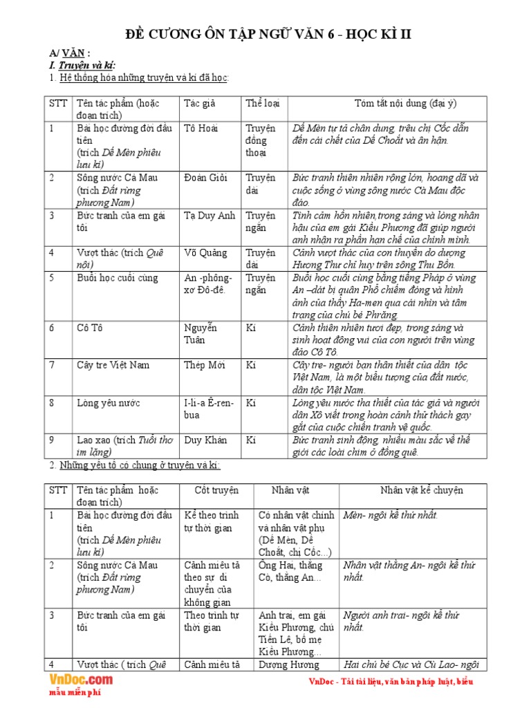 đề Cương On Tập Văn 6 Học Kỳ Ii Giao An Bai Giảng