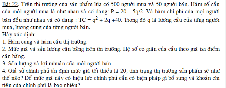 Một hãng sản xuất có hàm cầu là q 130 10p a khi giá bán p 9 thì doanh thu là bao nhiêu tính độ co giãn của cầu theo giá tại mức giá này và cho nhận xét. Giá cả ở mỹ 22 xu pao. Lý thuyết hành vi người sản xuất. đề cương ôn tập kinh tế vi mô lý thuyết và bài tập.