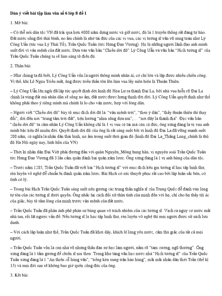 Dan Y Viết Bai Tập Lam Văn Số 6 Lớp 8 đề 1