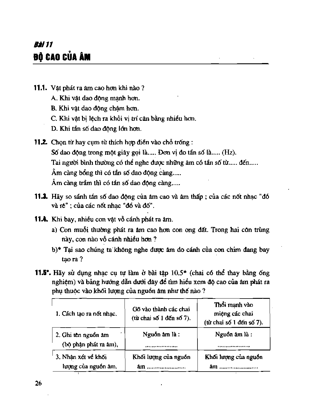 Bai 11 độ Cao Của Am Bai Tập Vật Li Lớp 7 Sach Lớp 7