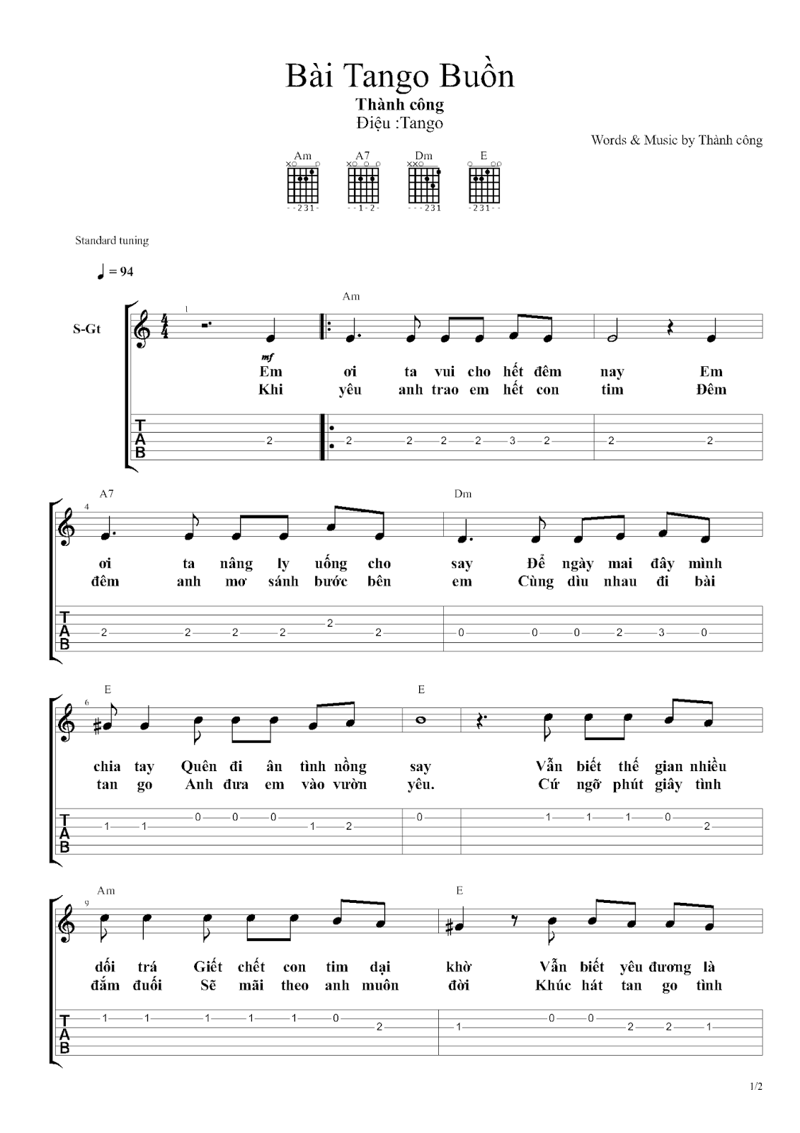 Sheet Nốt Nhạc Va Lời Bai Tango Cho Rieng Em Hoang Nguyen Sheet Nhạc Nốt Nhạc Hợp Am Vn Guitar