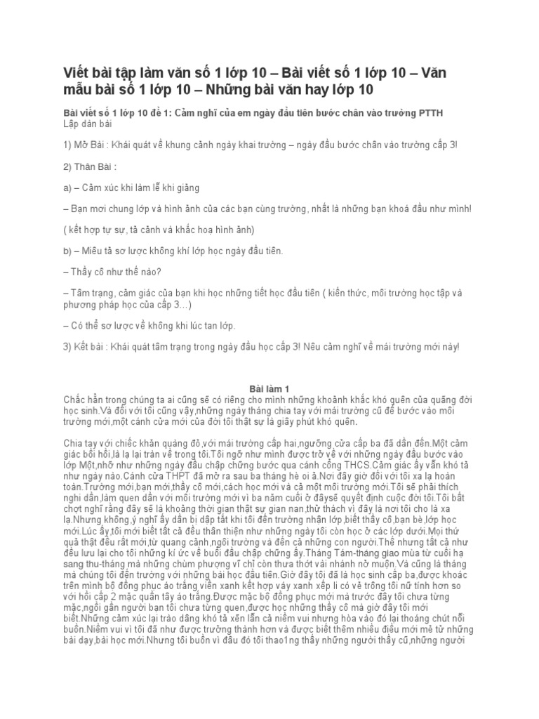 Sưu tầm bài văn mẫu lớp 10. Bài viết số 1 lớp 10. Bài văn mẫu lớp 10. Bài viết số 1 lớp 10 đề 3.