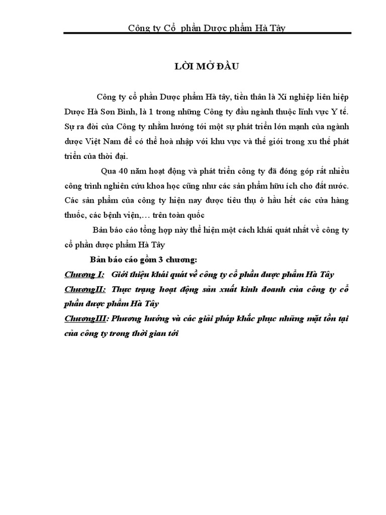 Bao Cao Thực Tập Tại Cong Ty Cổ Phần Dược Phẩm Ha Tay