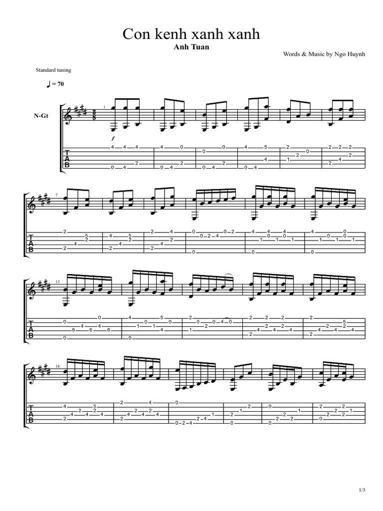 Tab Con Kenh Xanh Xanh Guitar Solo