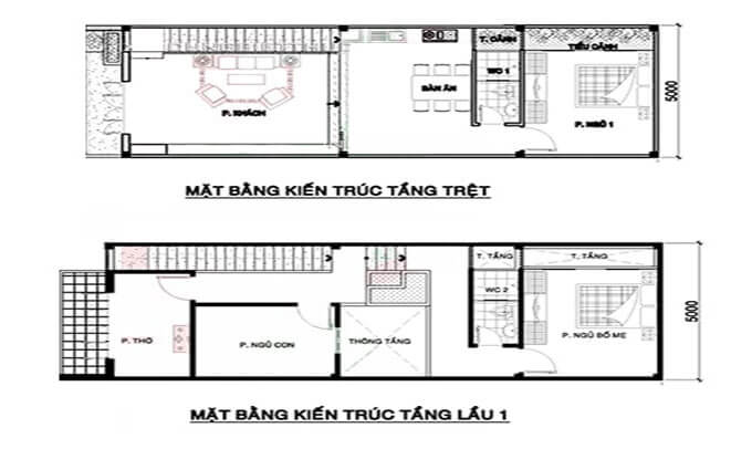 5 Bản Vẽ Chi Tiết Thiết Kế Nha Phố 2 Tầng Mặt Tiền 3m
