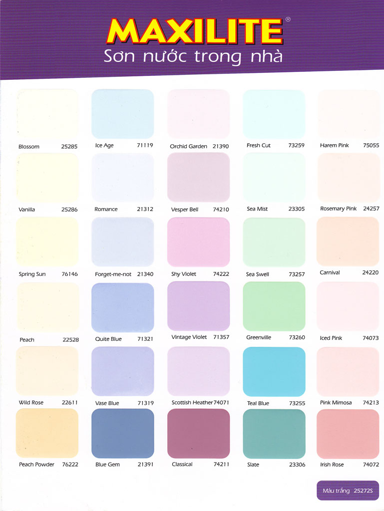 Bảng Màu Sơn Maxilite Trong Nhà 2020