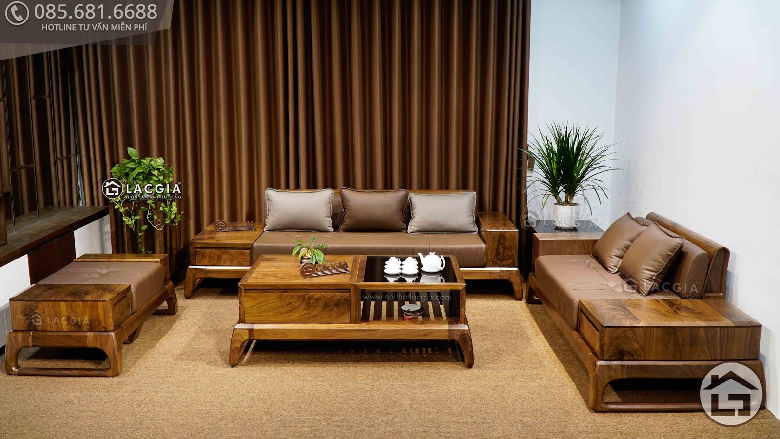 Bộ Ban Ghế Sofa Gỗ Phong Khach Sang Trọng Amia Sfg018