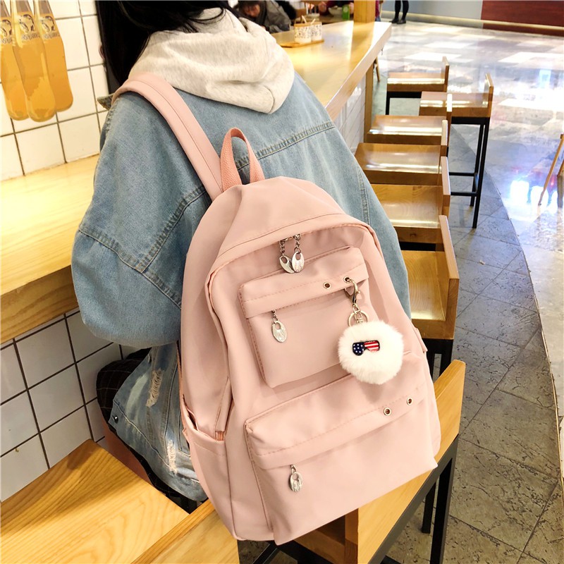 Balo Nữ Balo đi Học đi Chơi Laptop Teen Han Quốc Balo Kem Bong Treo