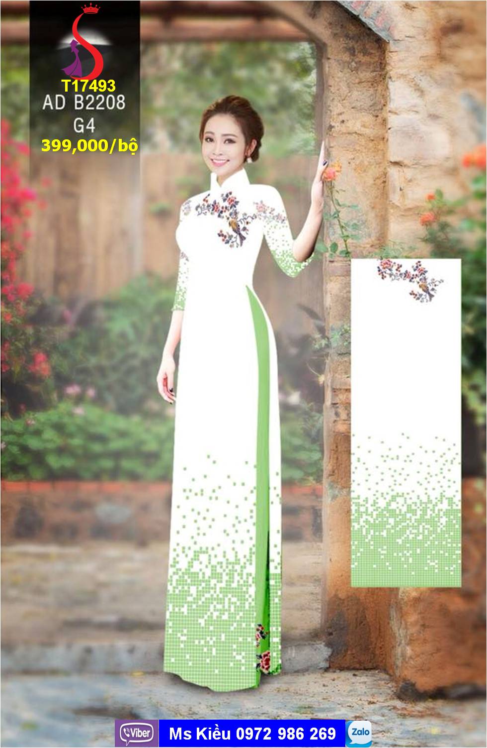 Mẫu Ao Dai đẹp Thiết Kế Chấm Bi Hoa Mẫu T17493 Vải Ao Dai S