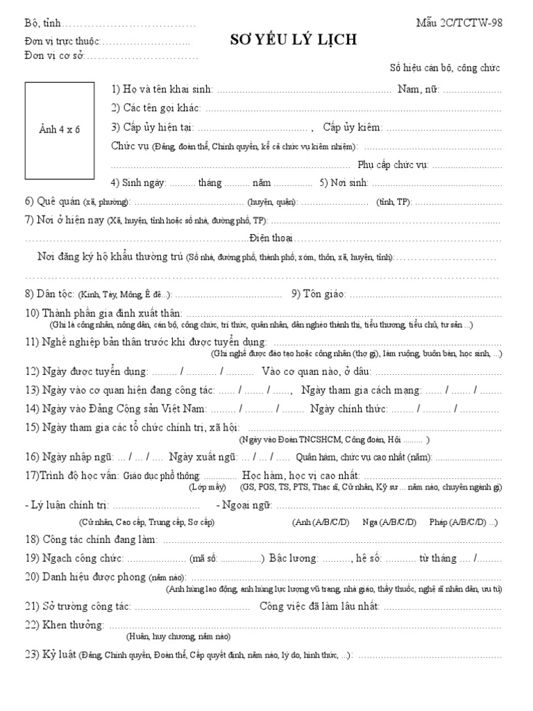 Sơ Yếu Mẫu 2c Tctw 98
