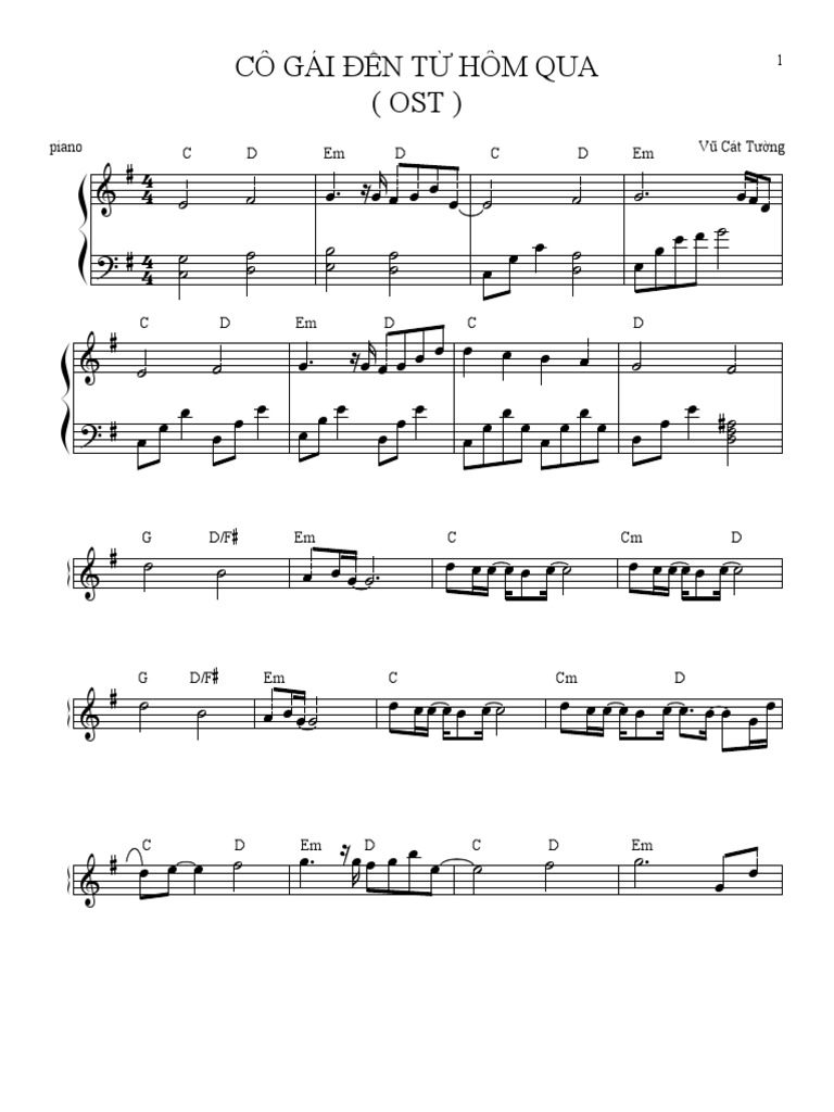 Co Gai Ngay Hom Qua Vũ Cat Tường Piano Solo Transcription Sheet Youtube