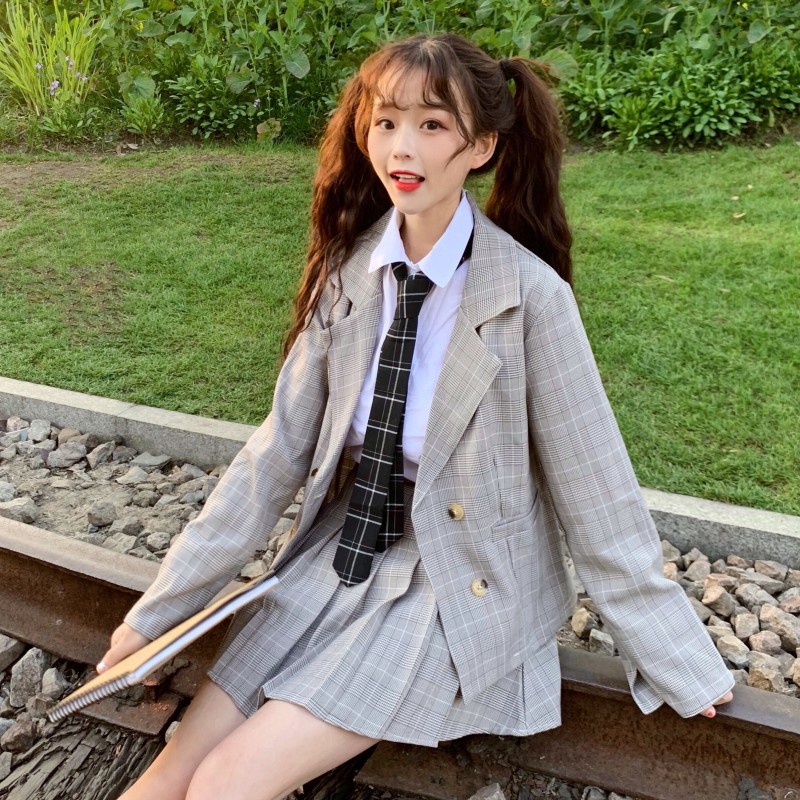 Gia Sỉ Set Ao Sơ Mi Ca Vạt Va Chan Vay Xếp Ly Ngắn Style Học Sinh Han Quốc Trẻ Trung Năng động Lazada Vn