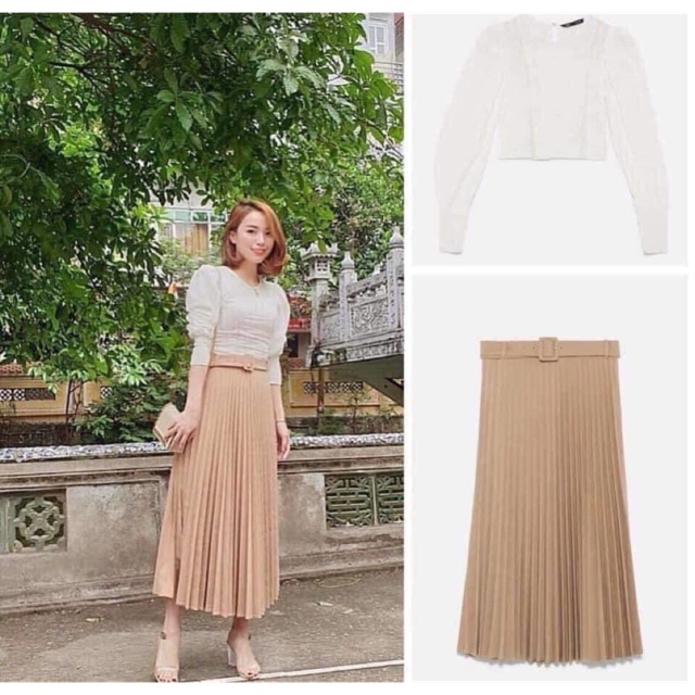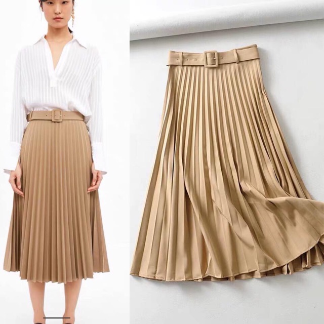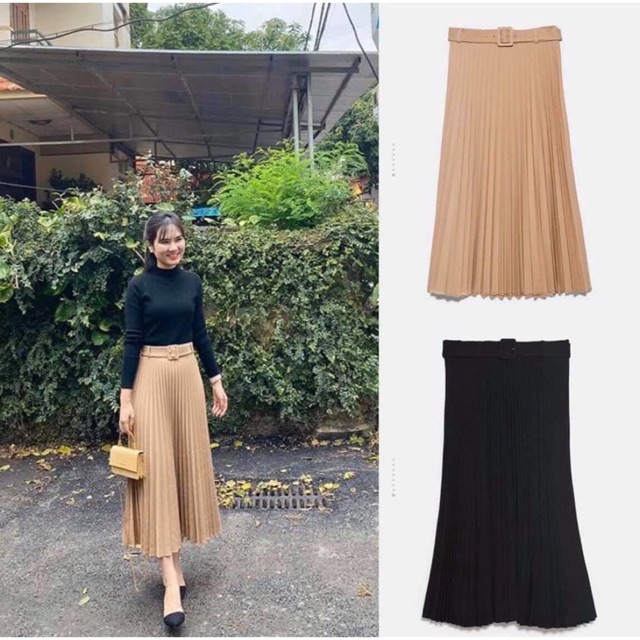 Chan Vay Midi Xếp Li Kem Belt Zara Hang Xuất Shopee Việt Nam