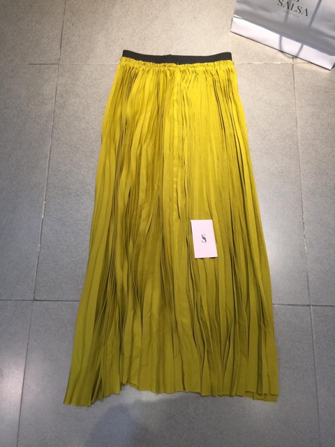 Chan Vay Xếp Ly Zara Cạp Chun Mau Vang Mustard Trendy Muazii