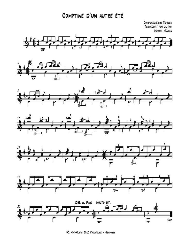 Https Nbnguitar Squarespace Com S Comptine Dun Autre Ete Sheet Music Tabs Pdf