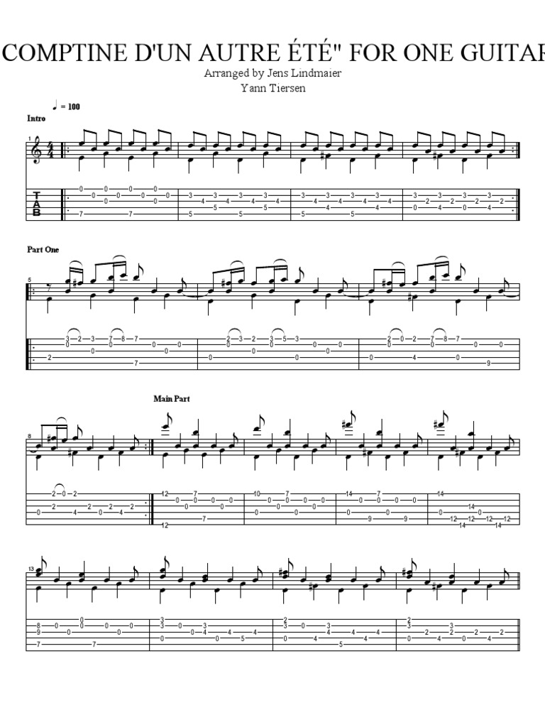 Comptine D Un Autre Ete One Guitar Una Guitarra Score Tabs Partitura Y Tablatura Pdf Document